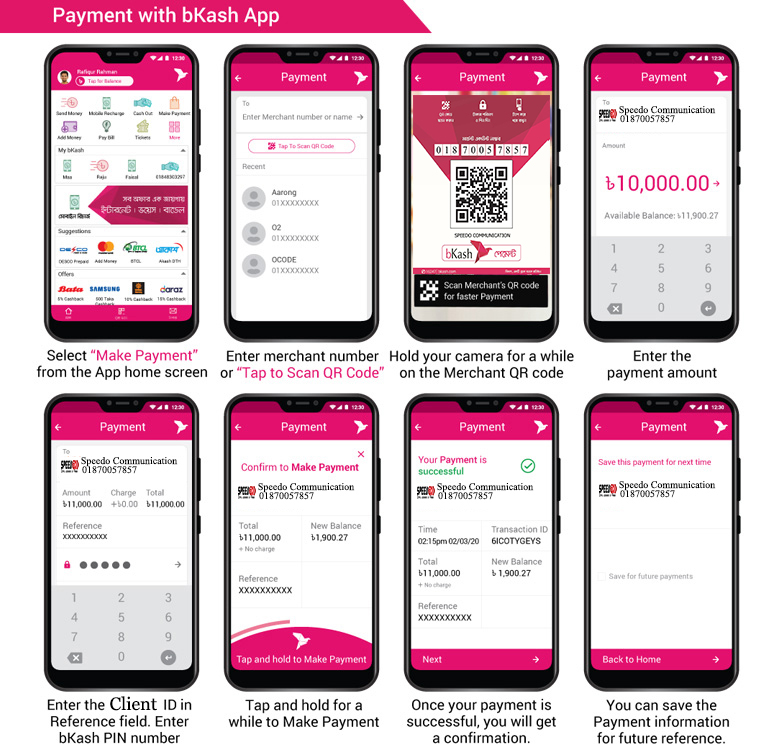 You can make payments your monthly bill from your bKash Account. To bKash your Payment follow the steps below...