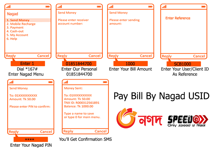 You can make payments your monthly bill dialing *167#. To Nagad your Payment follow the steps below...